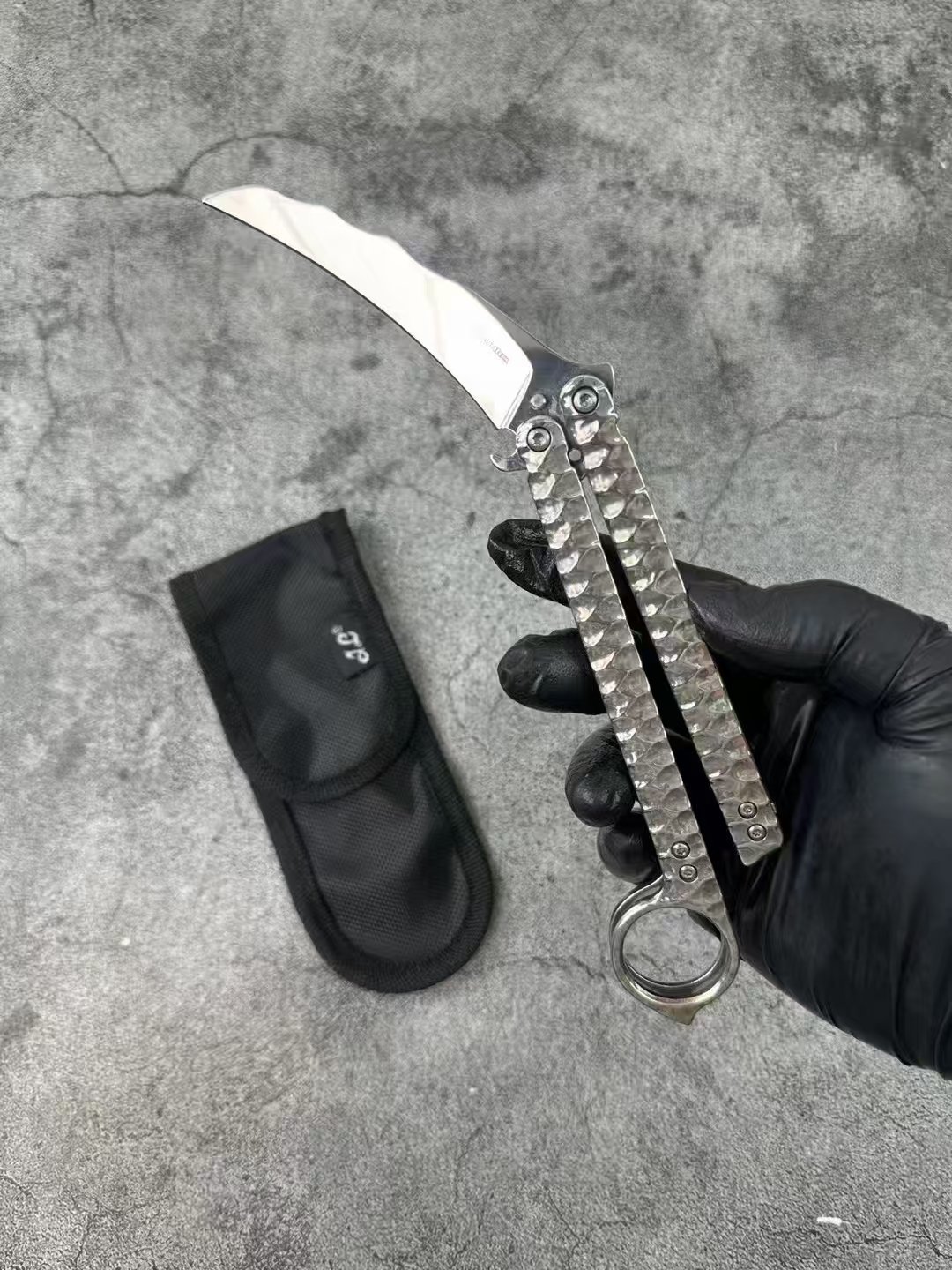 The Balisong Karambit Eagle Claw is a striking variation of the traditional butterfly knife, featuring a unique karambit-style curved blade. This Color Titanium Edition stands out with its vibrant, eye-catching finish, combining functionality with bold aesthetics. Perfect for flipping enthusiasts and collectors, this knife offers smooth handling and precision in every move. Its eagle claw-inspired design adds an aggressive and stylish edge, making it a standout piece for training, display, or EDC.