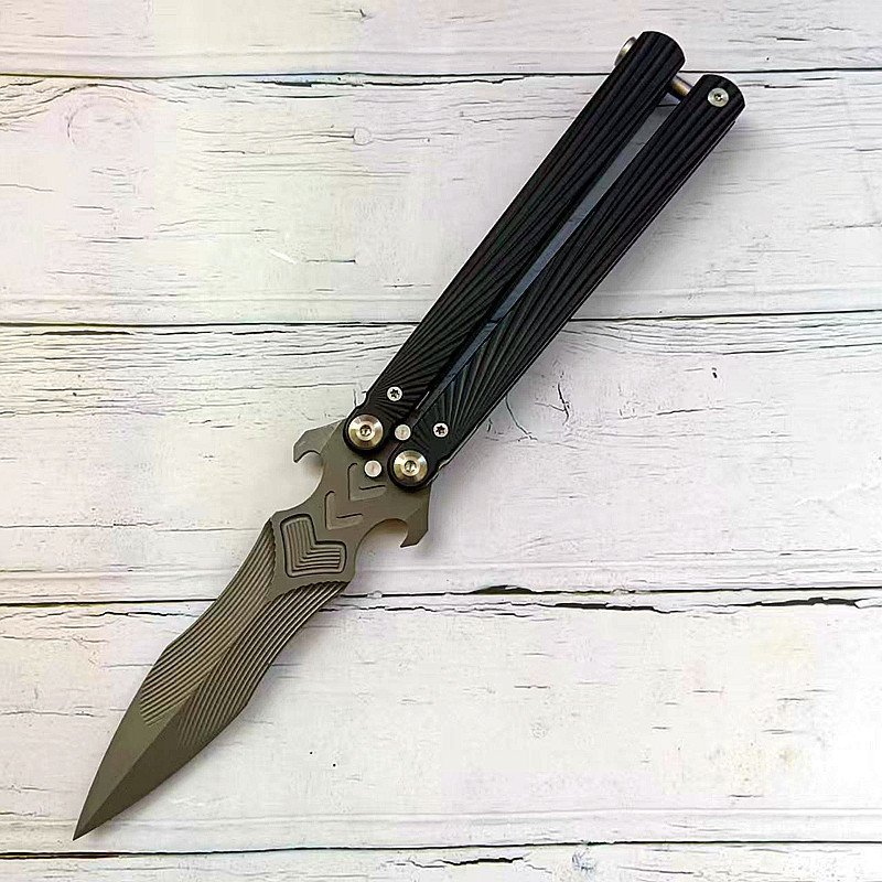 Butterfly knife unsharpened aluminum handle practice training knife folding hand fancy knife